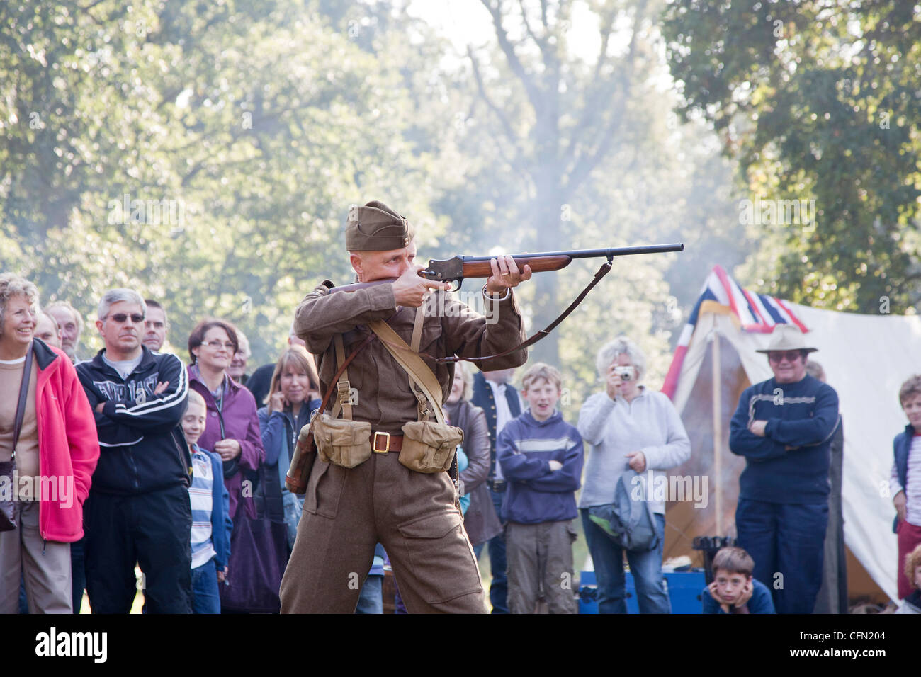 It fires a hardened lead bullet with a muzzle velocity of 1,350 feet per second, and the weapon is sighted for up.